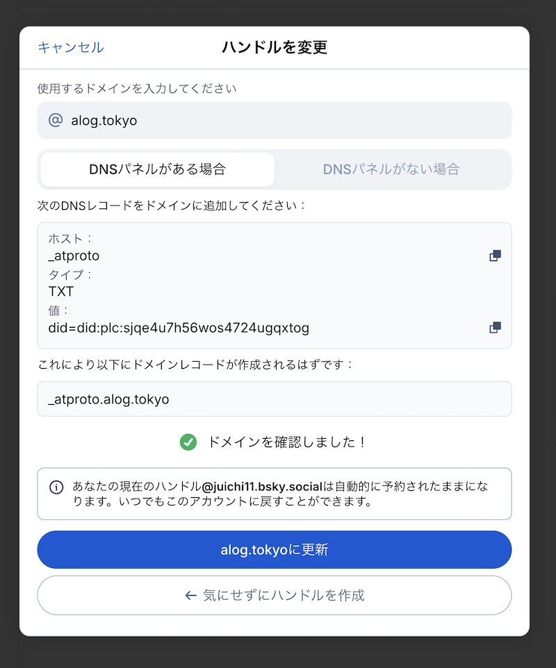僕のBlueskyのアカウントに、このブログの独自ドメインを設定することにした。