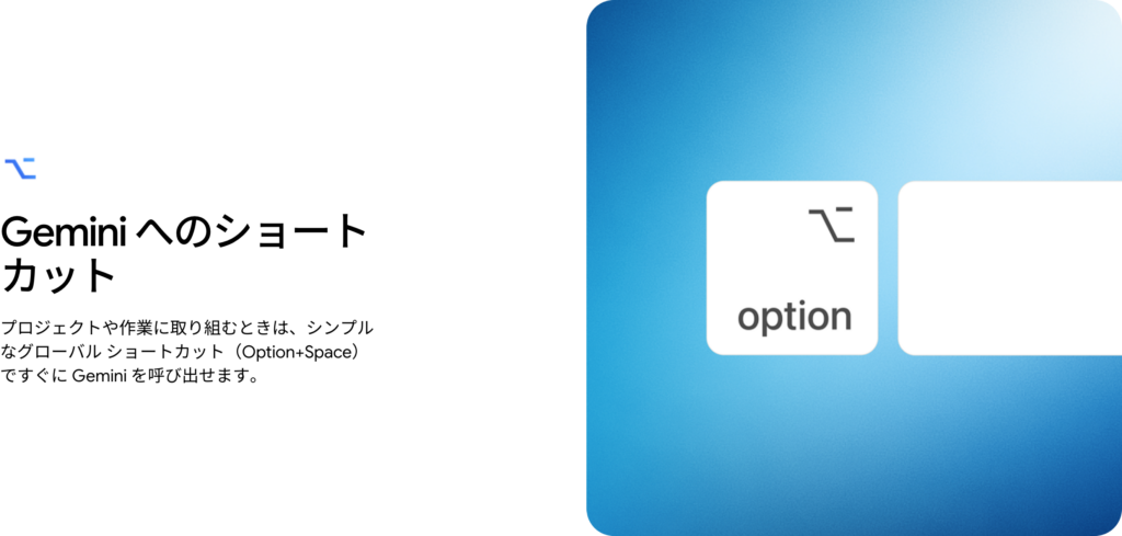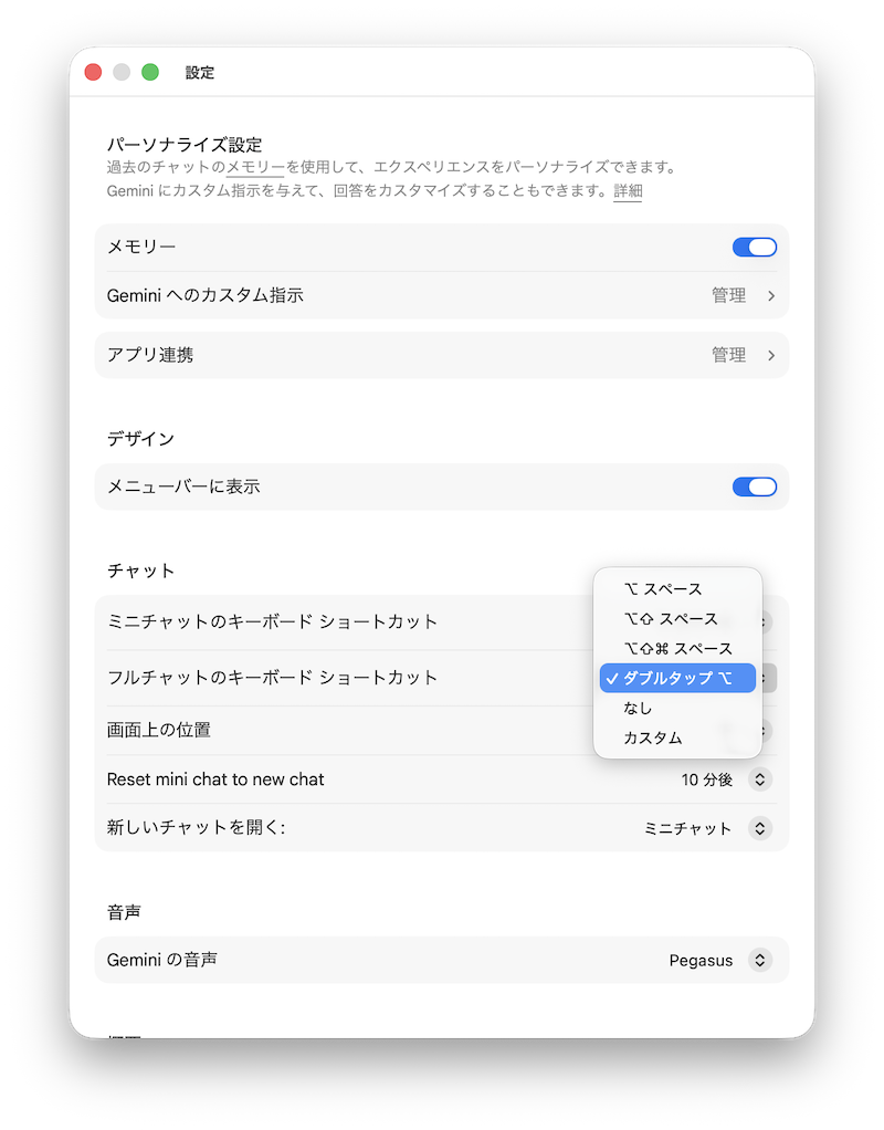 つまり⌥を2回叩けば、瞬時にGeminiが立ち上がる。