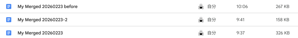 それなら、このGoogleドキュメントのファイルを、がっちゃんこしてしまえばいいんじゃないかと思い立ったわけだ。