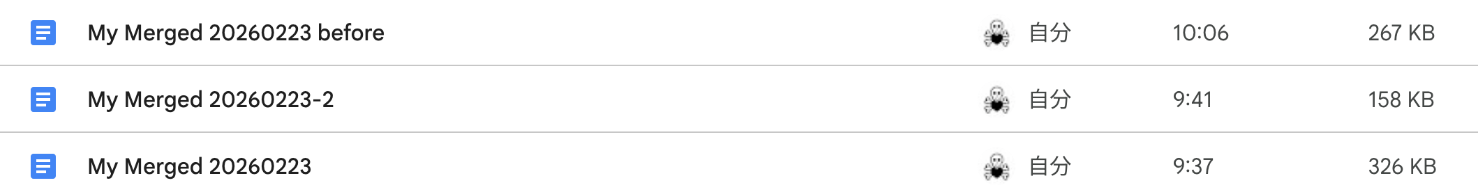 それなら、このGoogleドキュメントのファイルを、がっちゃんこしてしまえばいいんじゃないかと思い立ったわけだ。