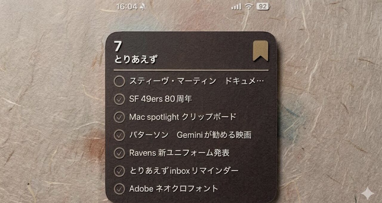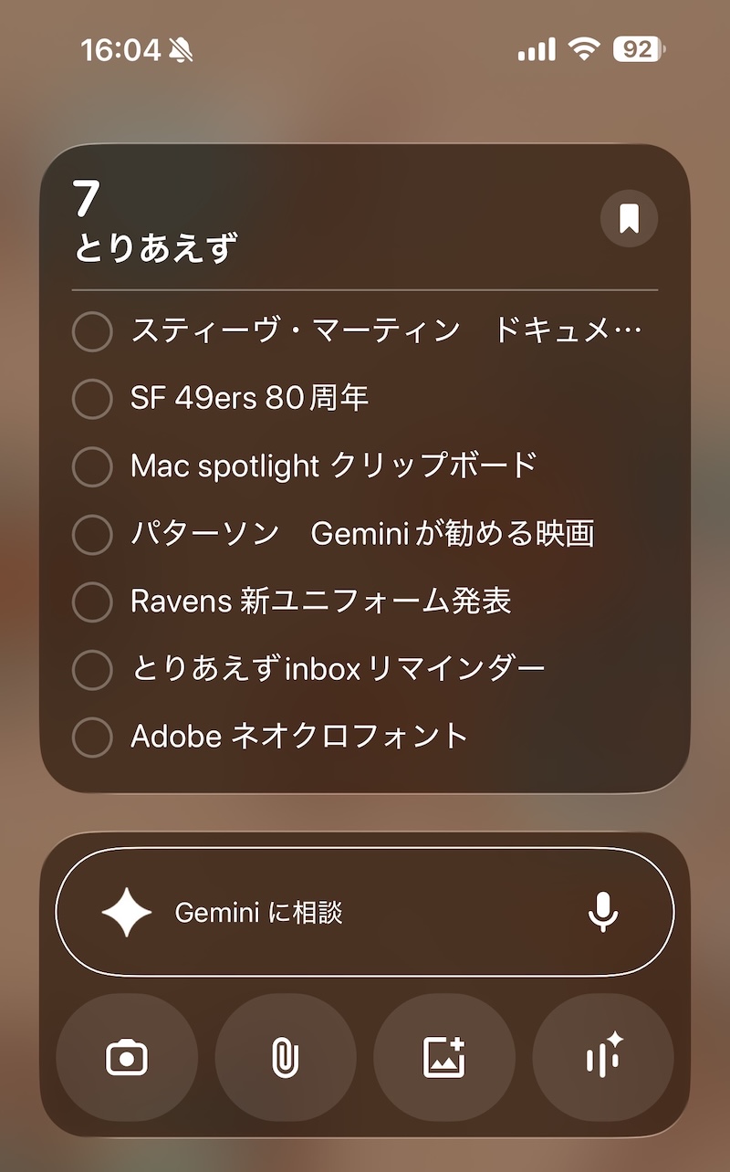 さらに、このリマインダーリストをiPhoneのウィジェットで表示させておけば、昔よく見かけた、To Doリストのジョッターみたいな雰囲気を醸し出す。