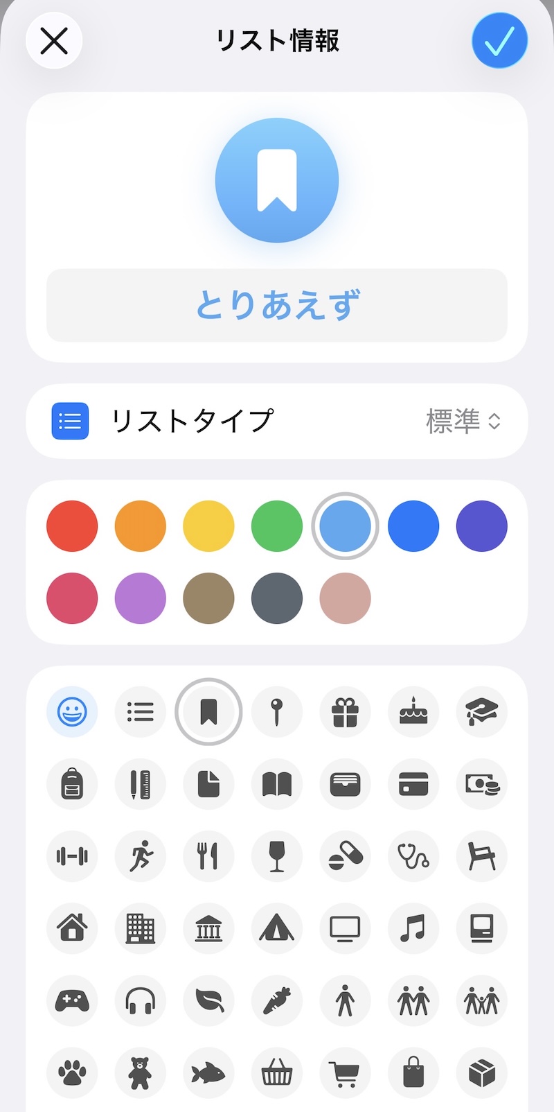 ここで表示させるリマインダーのリストの中から「とりあえず」を選択して表示させている。