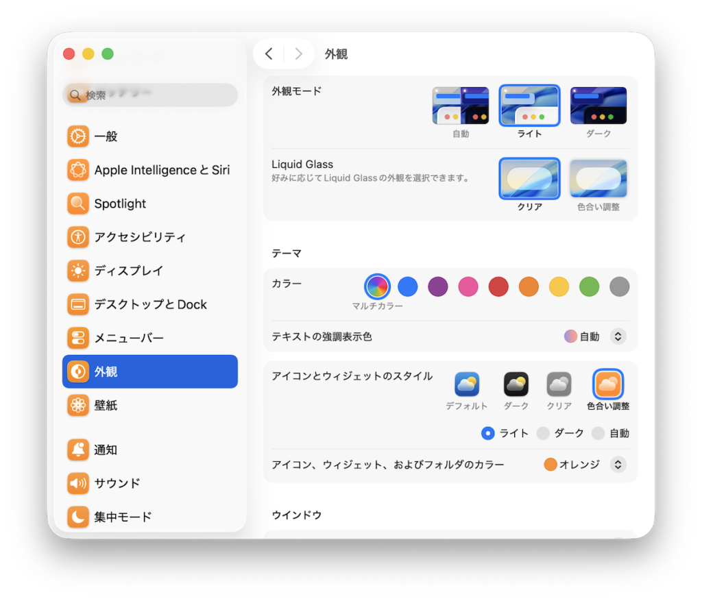 こちらも、ダークモードに切り替えても色味が変わらないように、「自動」ではなく「ライト」に設定している。