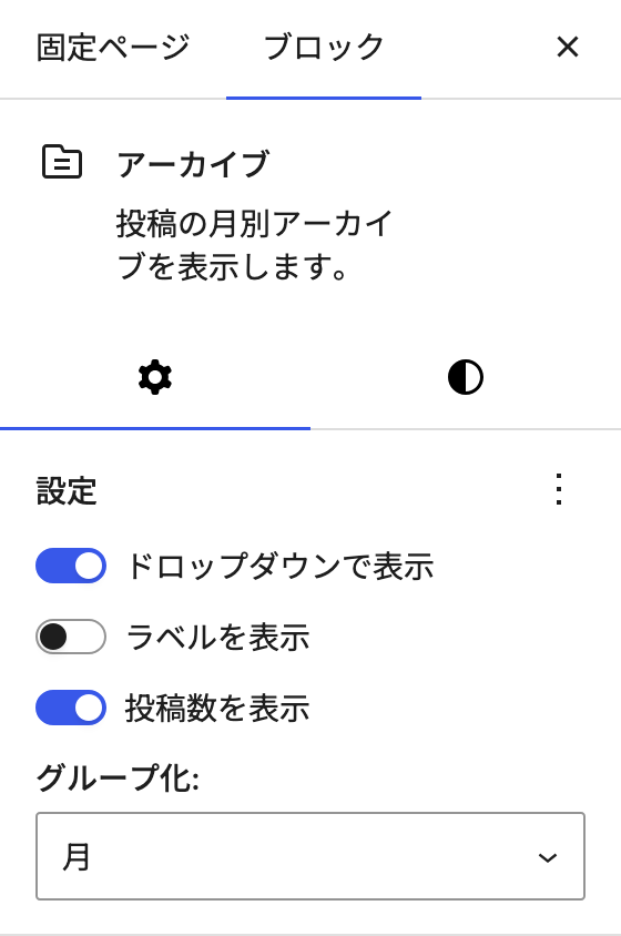 そして、ドロップダウンのアーカイブ。