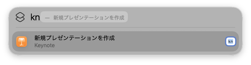 僕は、このアクションに「kn」というクイックキーを選択することにした。