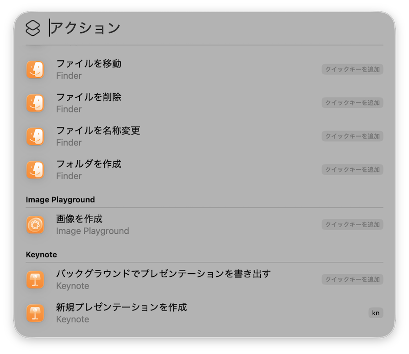 だが、試しにアクション ⌘3を開いてみたら、本当によく使うアクションを見つけた。