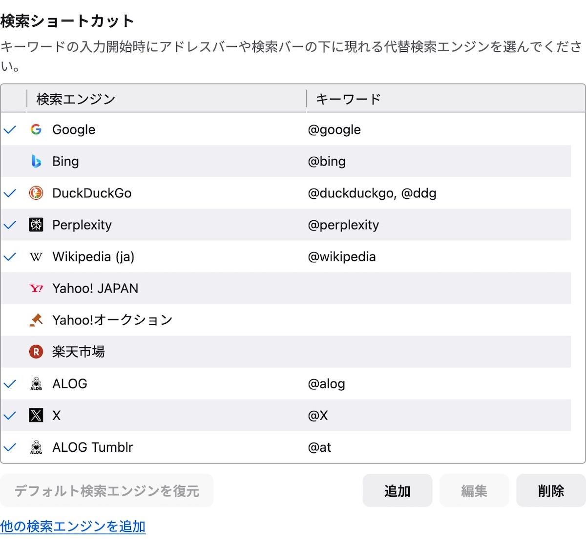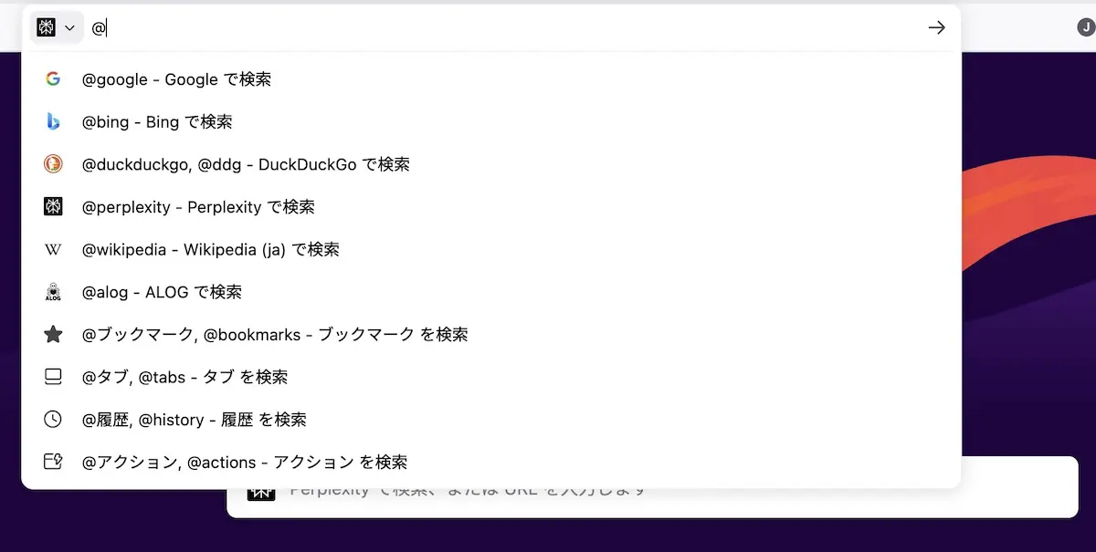 つまり、デフォルトの検索エンジンとしてPerplexityを選択することが可能になっている。
